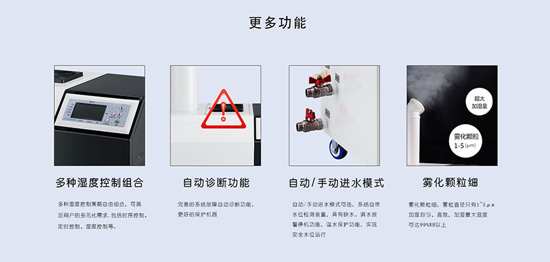 ※ 濕度數(shù)碼全自動(dòng)控制,控制系統(tǒng)配備進(jìn)口濕度傳感器,控制精度高、反應(yīng)迅速。設(shè)定后連續(xù)工作, 無(wú)    需人員職守